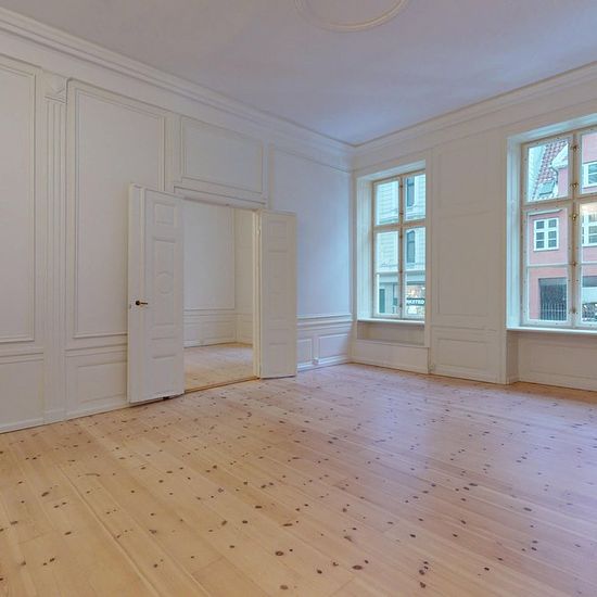 OBS: Ingen bofællesskaber. På én af Københavns mest historiske og eftertragtede adresser udbydes nu denne enestående og sjældent ledige lejlighed på hele 210 kvm. Lejligheden er beliggende på Store Kongensgade, en klassisk og stemningsfuld hovedgade, der strækker sig fra Kongens Nytorv mod Østerport. Her mødes man af fredet arkitektur, originale detaljer og et håndværksmæssigt udtryk, der giver boligen en helt særlig atmosfære. Lejligheden fremstår fuldstændigt nyrenoveret og byder på fem rummelige værelser, som giver en fleksibel indretni...