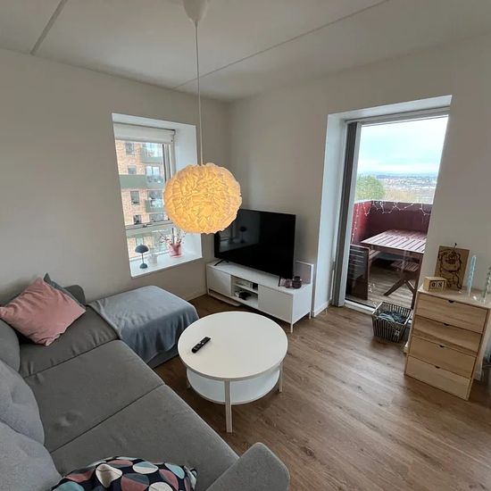 Velkommen indenfor i denne kvalitetsrige lejlighed med en fantastisk udsigt over Aalborg! Lejligheden er 75 kvm, og har en god rumfordeling, hvilket gør den særdeles delevenlig. Den gennemgående stil i lejligheden er moderne, og der er et lyst og indbydende køkken. Der er ligeledes vedligeholdelsesfrie gulve med gulvvarme i hele boligen. Lysindfaldet fra de store vinduer er helt eminent, hvilket skaber en skøn og varm stemning i hjemmet. Ydermere er der adgang til en stor og lækker altan, hvor der er rig mulighed for at nyde udsigten og so...