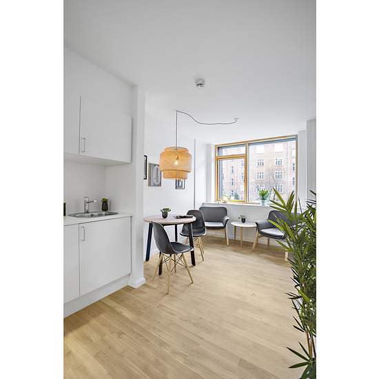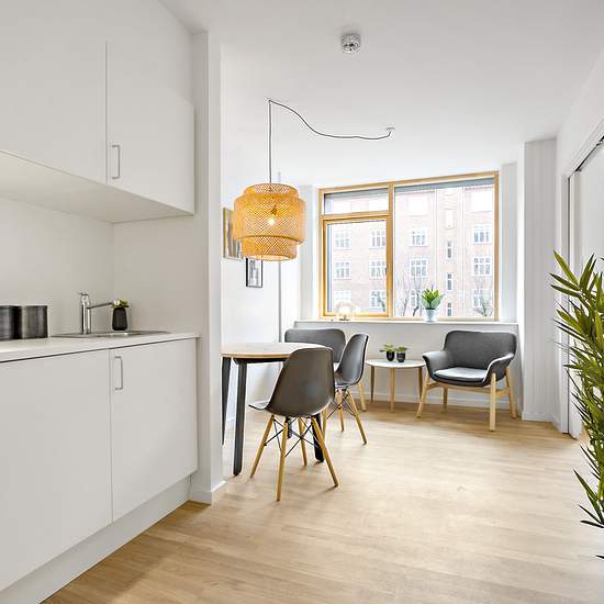 Med sin ideelle placering, tæt på både byens puls og naturskønne områder, er denne lejlighed perfekt til både singler, studerende og par. Projektet omfatter 81 lejeboliger og er både 1-2 værelses lejlighed. Facaden består af blikfacader og karnapper, der bidrager til at give bygningen et arkitektonisk og nordisk udseende. Boligerne er designet med optimal udnyttelse af pladsen og godt lysindfald fra de store vinduer, samt gulvvarme i hele lejligheden. Køkkenet er integreret med boligens opholdsrum, hvorfra der er adgang til badeværelset, s...