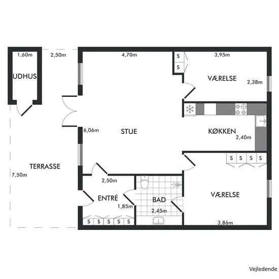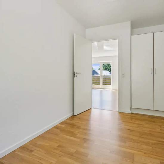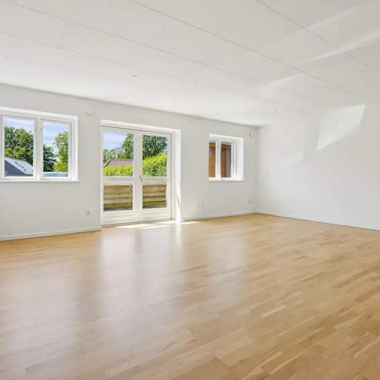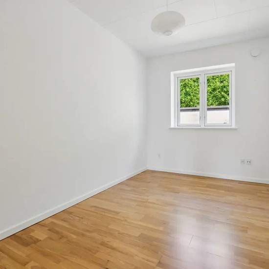 Lejligheden ligger i stueplan og byder på en god og gennemført planløsning med to værelser, en rummelig stue og separat køkken. Fra stuen er der direkte udgang til en terrasse. Køkkenet er indrettet med hvide skabselementer og god skabsplads. Entréen har indbyggede skabe, og der er yderligere opbevaringsmuligheder i begge værelser. Badeværelset er lyst og funktionelt med separat bruseniche. Til lejligheden hører også et udhus, der giver ekstra opbevaringsplads til fx cykel eller haveredskaber. Fanøevej er en del af et roligt og etableret bo...