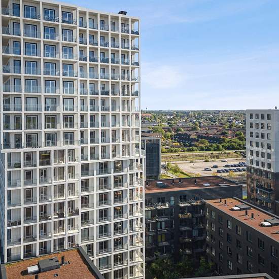 Den nye og markante ejendom i Bellakvarter er opdelt i et 60 meter højt tårn og en base der går op til 5. sal og består samlet set af 199 unikke boliger fordelt på 2-6 værelser. Stort set alle boliger i tårnet har enten egen altan eller tagterrasse, hvor det giver mulighed for at nyde den formidable udsigt ud over Ørestad og over Amager Fælled til Københavns Skyline. Boligerne har et stilrent og nordisk look og er opført i lækre materialer såsom flotte egetræsgulve og store vinduespartier. De store vinduespartier giver et dejligt lysindfald ...