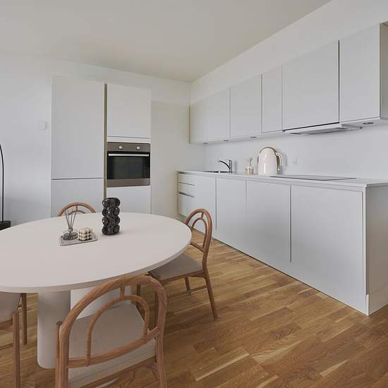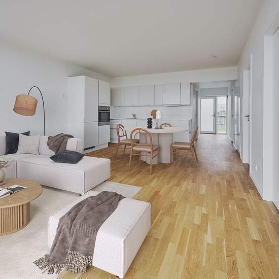 Kun 20 minutters kørsel fra Aarhus C finder I Kaløvigparken og denne skønne 4-værelses lejlighed. Perfekt til den lille familie eller jer, der gerne vil have ekstra meget plads. Alle kvadratmeter er optimalt udnyttet og lejligheden indeholder: • Entré med plads til overtøj og sko • Stort køkken-alrum i åben forbindelse med stuen. • Fra stuen er der udgang til stor terrasse • Badeværelse med masser af skabsplads, væghængt toilet samt kombineret vaskemaskine og tørretumbler • Tre store lyse værelser med store vinduespartier Overalt i lej...