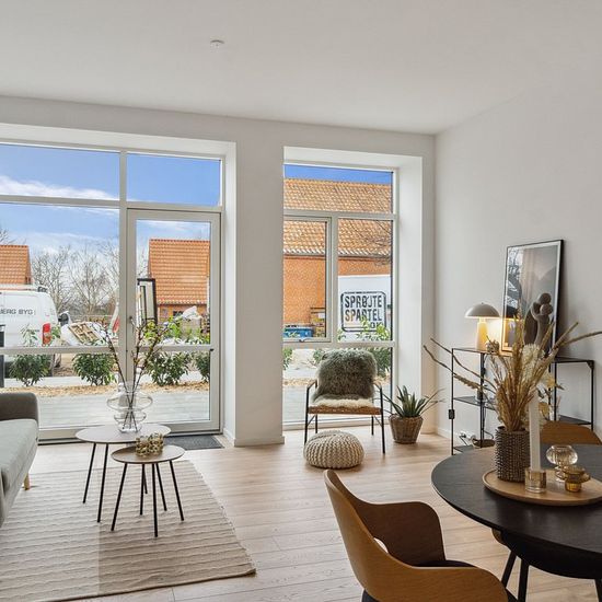 Boligen er indrettet med lyse gedigne materialer, dejligt brusebadeværelse, køkken i åben forbindelse med stuen, og monteret med alle hårde hvidevarer, der hører til i et funktionelt køkken, samt et dejligt værelse med garderobeskabe. Det er tilladt at have hund eller kat i boligerne. Der er parkering tilknyttet bebyggelsen. Området er rigtig skønt og roligt og der er mange flotte naturoplevelser lige i nærheden. Under 5 minutters gang fra boligen finder I Sonnerup Skov, hvor I kan gå mange ture sammen og komme hele vejen ud til Danmarks...