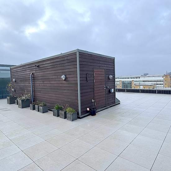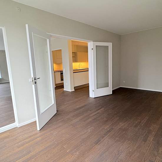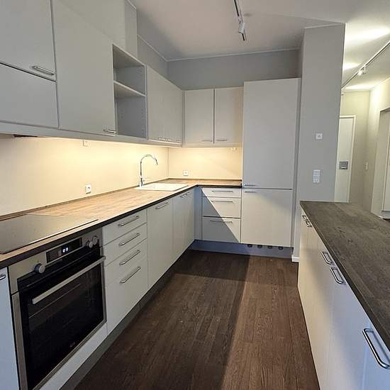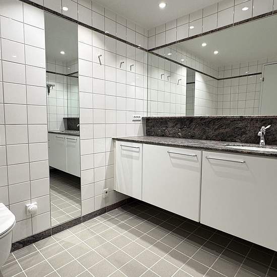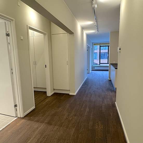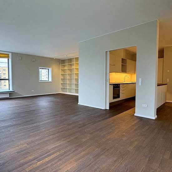 Lejligheden er beliggende i en velholdt ejendom med elevator og stor fælles tagterrasse. Den er indrettet med entre, et fint badeværelse med bruseniche. Køkkenet er i direkte forbindelse med en stor stue, og i forlængelse af denne er der endnu en stue med glasdøre. Denne stue kan bruges som ekstra soveværelse. Mellemgang med skabe og adgang til et stort soveværelse, samt endnu et badeværelse med badekar og vaskemaskine/tørretumbler. Der er opbevaringsrum i kælderen samt underjordisk parkering, med mulighed for at leje en parkeringsplads (1.2...