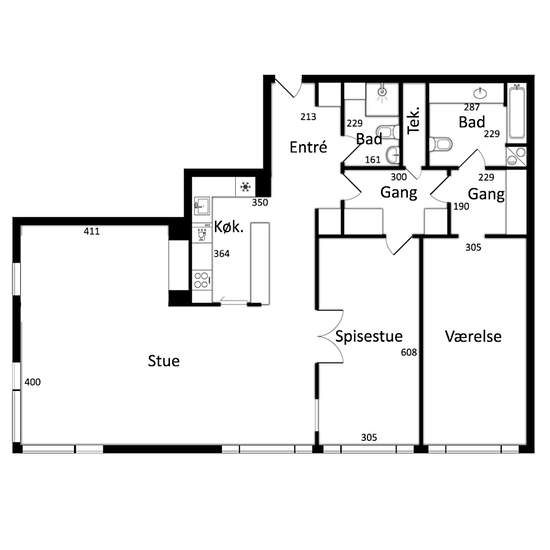 - 3 værelser