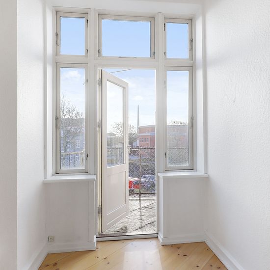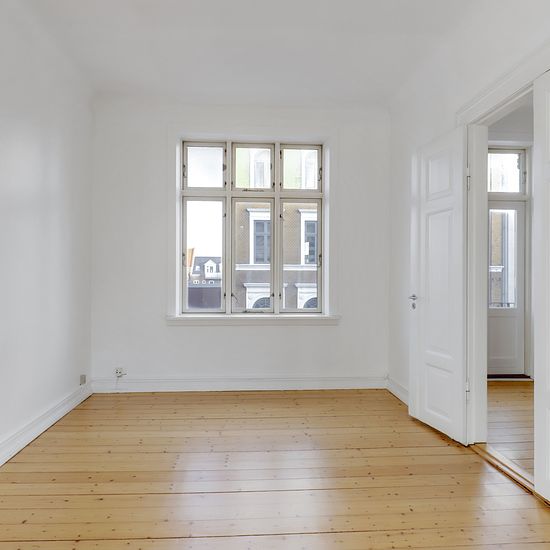 Denne charmerende og velindrettede lejlighed fremstår lys og indbydende med klassiske detaljer og en god planløsning. Lejligheden rummer store opholdsrum med flotte, lyse plankegulve, hvide vægge og et behageligt lysindfald fra de store vinduespartier. Boligen har en rummelig stue med god plads til både sofa- og spiseafdeling samt direkte adgang til altan. Herudover findes et godt soveværelse, ligeledes med udgang til altan. Lejligheden har i alt to altaner, som giver ekstra lys, luft og gode muligheder for udeliv fra både opholdsrum og sov...