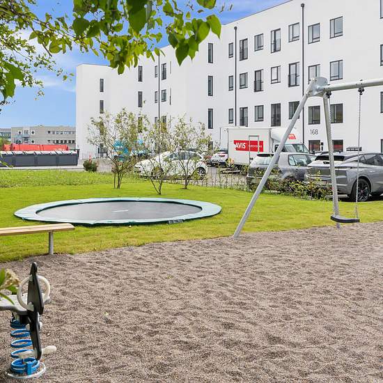 Denne moderne 3-værelses lejlighed ligger højt og lyst på 3. etage, hvor man straks bemærker den behagelige fornemmelse af luft og udsyn, når man træder indenfor. Den rummelige entré åbner op mod et stort og indbydende køkken-alrum, der får et flot naturligt lysindfald fra de store vinduespartier. Det stilrene køkken er udstyret med alt i hårde hvidevarer og ligger i åben forbindelse med stuen, hvilket skaber et sammenhængende og levende opholdsrum. Herfra er der direkte adgang til en dejlig altan, som yderligere forstærker følelsen af åbenh...