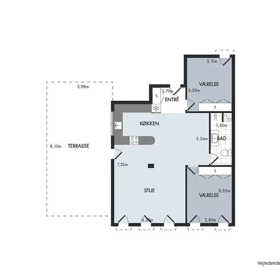 - 3 værelser