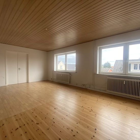 Stor 4-værelses lejlighed på 1. sal i hjertet af Bjerringbro. Lejligheden indeholder: Entré. Opholdsstue med dobbelte døre til spisestue. Soveværelse med skabe. Køkken med komfur, emhætte køle-/fryseskab og opvaskemaskine. Badeværelse med badekar. 1 værelse. Nymalet og med lakerede trægulve. Mulighed for parkering. Mulighed for leje af garage til 370 kr. i måneden.