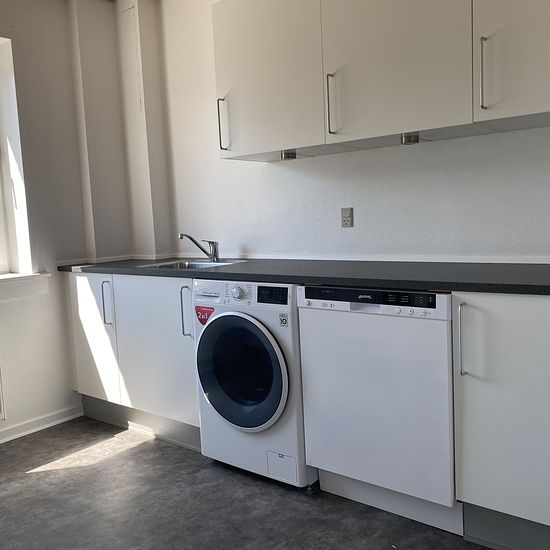 Stor 4-værelses lejlighed på 1. sal i hjertet af Bjerringbro. Lejligheden indeholder: Entré. Opholdsstue med dobbelte døre til spisestue. Soveværelse med skabe. Køkken med komfur, emhætte køle-/fryseskab og opvaskemaskine. Badeværelse med badekar. 1 værelse. Nymalet og med lakerede trægulve. Mulighed for parkering. Mulighed for leje af garage til 370 kr. i måneden.