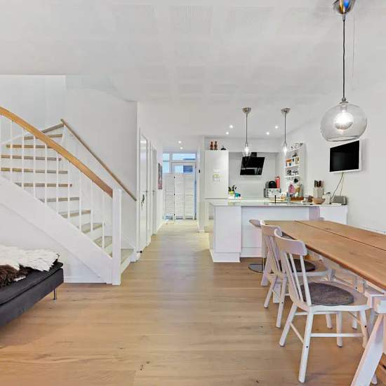Velkommen til Hasserislund! Her kan du leje en stor og rummelig bolig i et dejligt område. Området er under stor udvikling og det vil inden længe fremstå som et helt nyt kvarter med adskillige flotte nybyggede ejendomme. Rækkehuset er 118 kvadratmeter fordelt på entré, 3 store værelser, 2 badeværelser samt et stort køkkenalrum/stue. Ligeså vel som den resterende del af ejendommen, er boligen udført i kvalitetsmaterialer fra gulv til loft, herunder flotte plankegulve, kvalitetskøkkener fra Svane, hvidevarer fra Siemens mv. Endvidere er ræ...