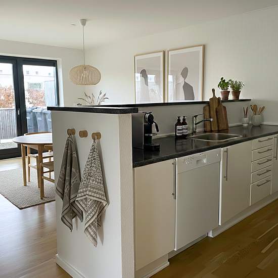 Stort rækkehus med 4 værelser, køkken/alrum, have og 2 terrasser