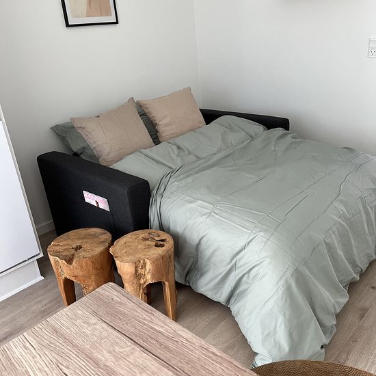 Stue lejlighed med lækker terrasse- billederne er fra en anden lejlighed magen til.