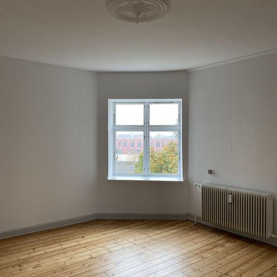 Nyistandsat 4 værelses lejlighed tæt ved Nyborg Banegård og kort afstand til centrum, lys lejlighed med fælles gårdhave. Der er entre, badeværelse, stort NYT køkken, 2 stuer og værelse. Lejligheden har højt til loftet og har de gamle plankegulve - flot og indbydende bolig. Denne bolig ligger meget tæt på havnen med alle de faciliteter, som byen tilbyder. Månedlig husleje kr. 7.950,- plus a conto vand 600,- kr. og varme 1.050,- kr./md. Der kan evt. medfølge et opbevaringsrum i gården.