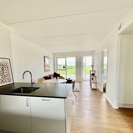 Leder du/I efter et sted, hvor naboerne kommer hinanden ved, og hvor der er mulighed for at få en aktiv hverdag med gode naboer? Kontakt os for at booke tid til åbent hus. Vi kan tilbyde en 2-værelses lejlighed med privat altan. Boligen: Badeværelse med vaskesøjle med vaskemaskine og tørretumbler af mærket Electrolux. I valget af hårde hvidevarer er lagt vægt på bruger-fleksibilitet og muligt lavt strømforbrug med timerfunktion m.v. Fra det åbne køkken/alrum/stue-miljø er der udgang til altanen. Køkkenet er fra HTH og har lyse grå fronter...