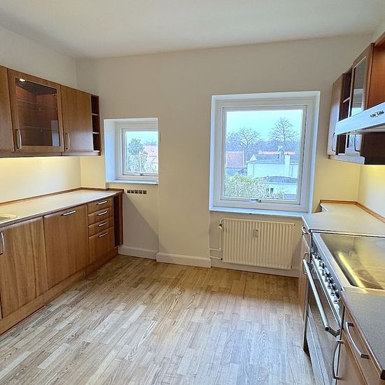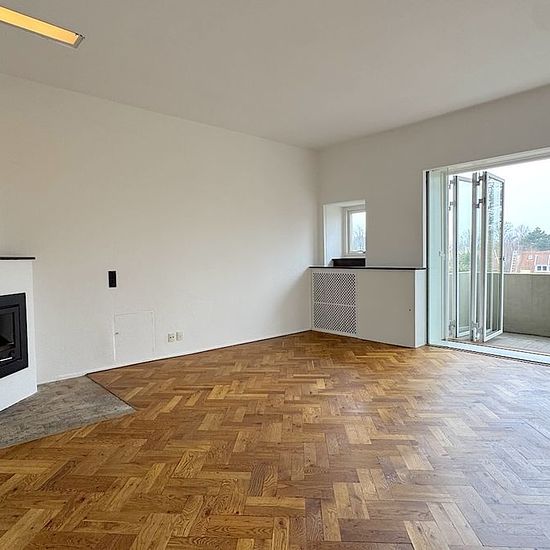 Lejligheden ligger på 2. sal, der er øverste etage. Den er arkitektdesignet og har mange charmerende detaljer og lysindfald. Den består af en trappe der leder op til et ankomst/entre-område. Herfra kan man til venstre tilgå en rummelig og lys stue/spisestue, der via en lille gang har direkte adgang til køkkenet. I den lille gang er der vaskemaskine/tørretumbler. Køkkenet er rummeligt og lyst. Ved siden af køkkenet er der et lille værelse samt et gæstetoilet ved entreen. Til højre for entreen komme man ind i en stor stue, der har en hyggelig ...