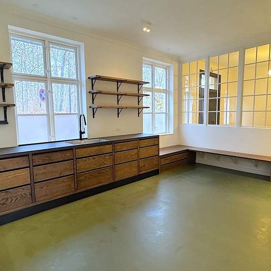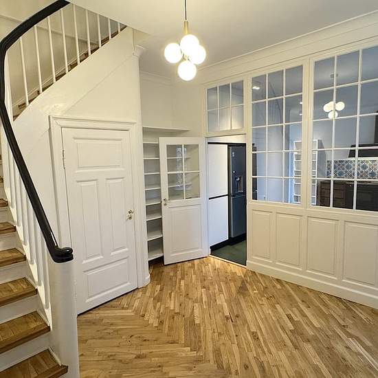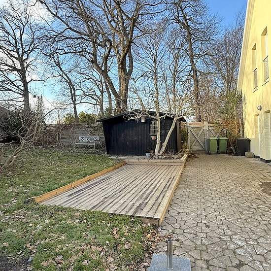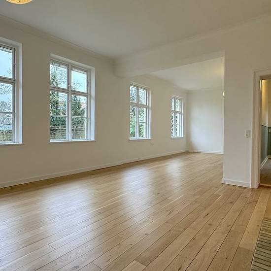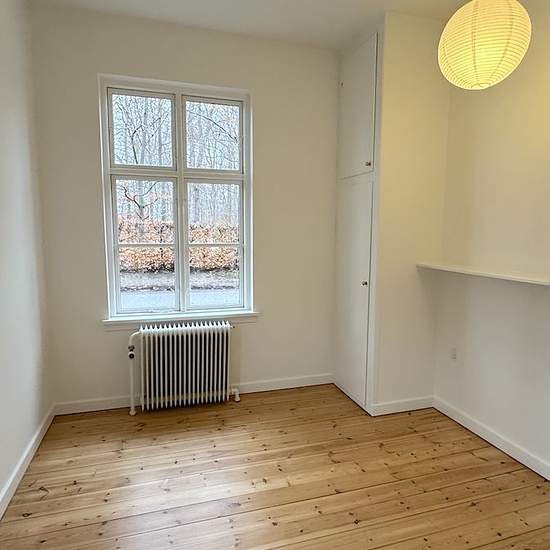På en stille isoleret vej, ved Bernstorff Slot og park, ligger dette hyggelige lejemål i et halvt dobbelthus. I stueetagen er der en stor lys entre og et badeværelse med bruseniche samt et godt soveværelse. Videre i stueetagen er husets hjerte, et stort hyggeligt køkken der er i åben forbindelse med et stort spiseområde samt stuen. Her er der højt til loftet og dejligt lyst, med sol det meste af dagen. I stuen er der ligeledes en hyggelig pejs og udgang til den dejlige sydvendte have. Haven er meget stor og deles med ejer af ejendommen. Der ...
