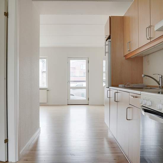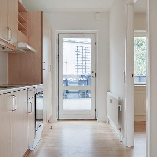 Om boligen: Velkommen til denne charmerende 2 værelses lejlighed, der kombinerer praktiske elementer med en behagelig atmosfære. Ved indgangen mødes du af køkkenet, hvor du har et indbygget garderobeskab, der tilføjer en ekstra dimension af funktionalitet til rummet. Køkkenet stråler af varme og er udstyret med materialer af høj kvalitet, hvilket skaber en fornemmelse af luksus og komfort. Her kan du lade dine madlavningskundskaber udfolde sig, mens du nyder det hyggelige miljø. Det lyse og indbydende soveværelse giver plads til ro og afslap...