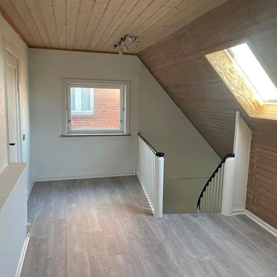 Hus til leje Søndergade 17 6823 Ansager Husleje 6300 + 1500 aconto Huse på 114 km2 med lille have samt carport til Badeværelse nyrenoveret billede er på vej, 3 værelser på 1.Sal, stort stue, entre, baggang, køkken samt lille have og carport Depositum 3 måneders husleje Huset opvarmes med fjernvarme Kontakt:
