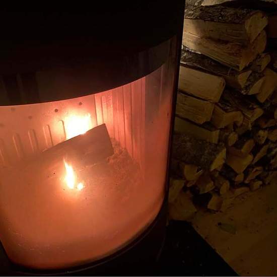 Fint møbleret hus med brændeovn og tre små værelser, køkken-alrum og stort badeværelse til leje i Dråby bakker i januar