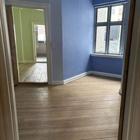 Helt centralt beliggende lejlighed 75m2 midt i gågade. Gothersgade 7. 2,5 værelses på 1 sal. Dejlig varm lejlighed med højt til loft og meget lys. Lejligheden males hvid inden udlejning . Lejligheden fremstår med originale plankegulve og nyt køkken. Udgang til terrasse. Mulighed for vask og tørring i ejendommen. Ønskes fremvisning kan der sendes en sms til Husleje 5800kr Aconto vand/varme 650kr Depositum: 3 mdr og 1 mdr forudbetalt.