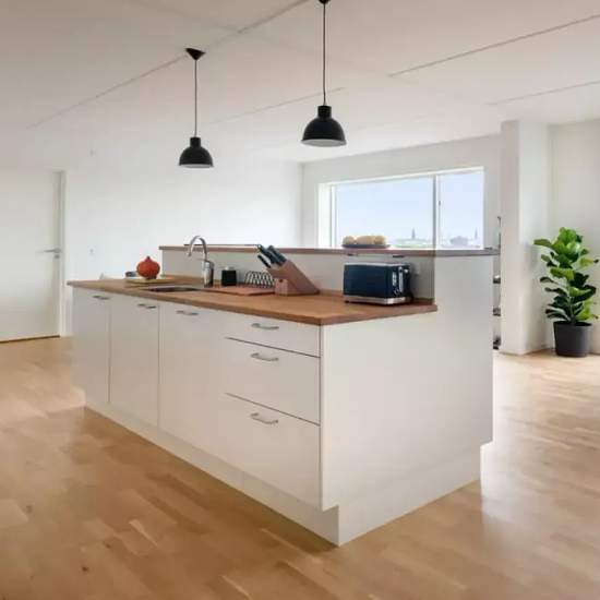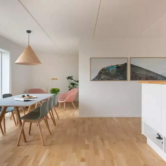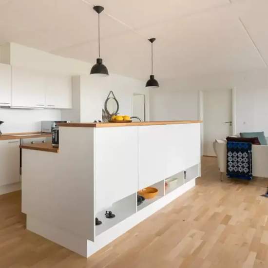 If you ever wanted to live on city island, with views to a ski slope, now you can. You live in the historical, green area Margretheholm, which used to be the home of the naval air station in 1915. Vandkunsten Architects designed this elegant top floor apartment. Wake up with the sun rising over the ocean, and finish the day with a drink and evening sun on the enormous terrace with breath-taking views of the Copenhagen harbor. You will never be bored on Refshaleøen. Hang out in trendy art galleries, the famous food market "Reffen" and up and ...