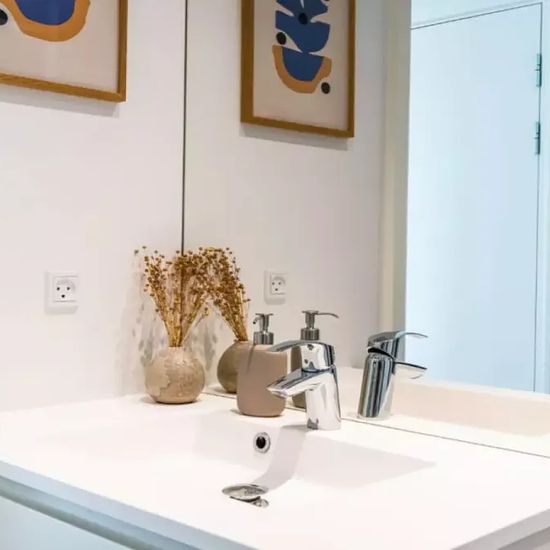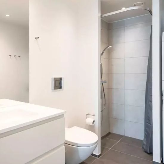This modern apartment has beautiful wooden floors and large double glass windows and central heating. There are 4 bedrooms, an open kitchen with dining area and a lounge area with TV. There is 1 shared bathroom with a laundry machine and dryer. Room 4 has a private ensuite bathroom. From the kitchen / livingroom you have access to 2 balconies, 1 large and 1 medium sized, both with supreme views. The building has a green backyard with tables and benches. 50 meters from the backyard, at the water front, there is an event room which can be book...