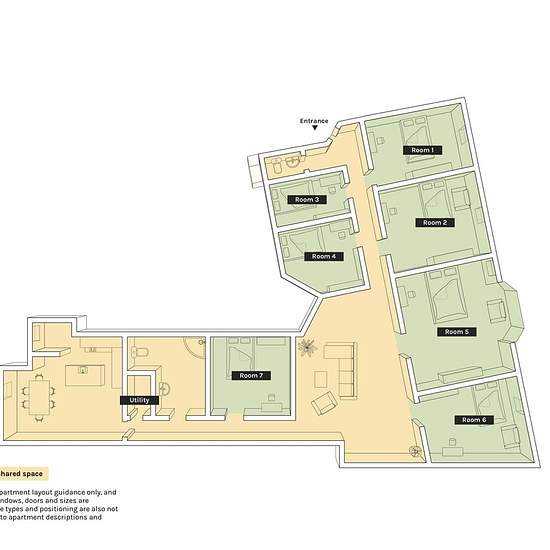 Furnished single room in shared apartment, available from 2026-04-01. The following amenities are included in the room: WiFi, Desk, Closet, Furnished, Kitchen, Dish washer, Oven, Freezer, Cooktop, Fridge, Shared bathroom, Equipped kitchen. The apartment has a total area of 316 square meters. There are 7 bedroom(s). The following amenities are available at home: WiFi, Furnished, Kitchen, Lift, Dish washer, TV, Equipped kitchen. Condo fees are not included in the rent. A minimum stay of 6 month(s) is required. It is possible to book directly o...