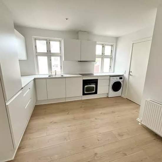 I det hyggelige latinerkvarter i Kolding udbydes nu denne totalt nyetablerede lejlighed til leje. Lejligheden er beliggende i stueplan og er under totalrenovering med bl.a. nye lofter, nye gulve, ny værelser med walk-in closet, nyt køkken med alle hvidevarer inkl. vaskemaskine/tørretumbler samt et splinternyt luksus badeværelse. Lejligheden kommer til at bestå af en kæmpe stor stue samt 2 separate soveværelser. Husleje: kr. 9.200/mdr. Aconto vand: kr. 200/mdr. Aconto varme: kr. 400/mdr. Depositum/indskud: kr. 27.600