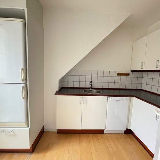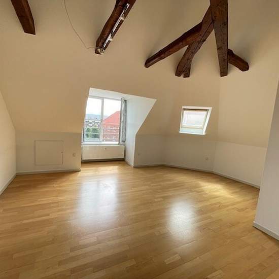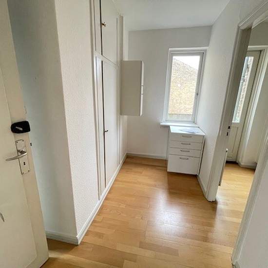 Lejligheden består af en stor praktisk entre med skabe. Stor spændende stue med hyggelige skråvægge, charmerende fritliggende træbjælker, store vinduer, som kan åbnes helt op, flotte praktiske trægulve i alle rum. Pænt soveværelse med store skabe, fint hyggeligt lyst køkken med god udsigt fra egen balkon, lige ud til stille gårdmiljø. Pænt lyst større badeværelse. Beliggende i centrum i en pæn stille mindre ejendom med 7 lejemål. Tæt ved Føtex på havnen, Vejle sygehus, havnen, skov, ikke langt fra banegård/station og gågaden. Gode parkering...