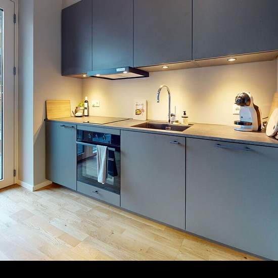 Boligen: I denne bolig træder du ind i et rummeligt køkken, køkkenet kommer med alle hårde hvidevarer og indbyggede skabe til opbevaring. Herfra møder du på højre hånd badeværelset, det er rummeligt og lyst med bruseniche og her medfølger en kombi vaske/ tørre maskine. Boligen kommer i høj kvalitet, med trægulve, flotte køkkener fra Rotpunkt, gulvvarme og et urbant moderne look! Ejendommen: Norden har 193 studios af høj kvalitet. Ejendommen byder derudover på et væld af faciliteter, eksempelvis er der adgang til tagterrasser, fælles arbejds/...