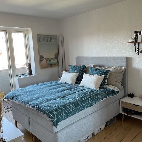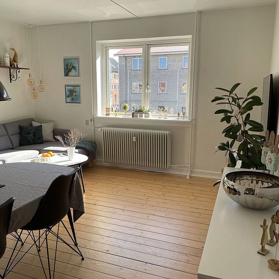 Pæn lejlighed i roligt villakvarter – Vestbyen Beliggende i et hyggeligt og roligt miljø på en villavej i det attraktive Vestbyen – tæt ved Annebergvej og med kort afstand til butikker , bus og nærbane . Lejligheden består af: Lille, hyggelig entré Dejlig opholdsstue med flotte plankegulve Stort soveværelse med plads til arbejdsbord og udgang til altan Pænt køkken med hvide skabslåger, stålgreb samt komfur, emhætte, køle/fryseskab og opvaskemaskine Fint badeværelse med god bruseniche, vask og skab Faciliteter: Nyt velhold...