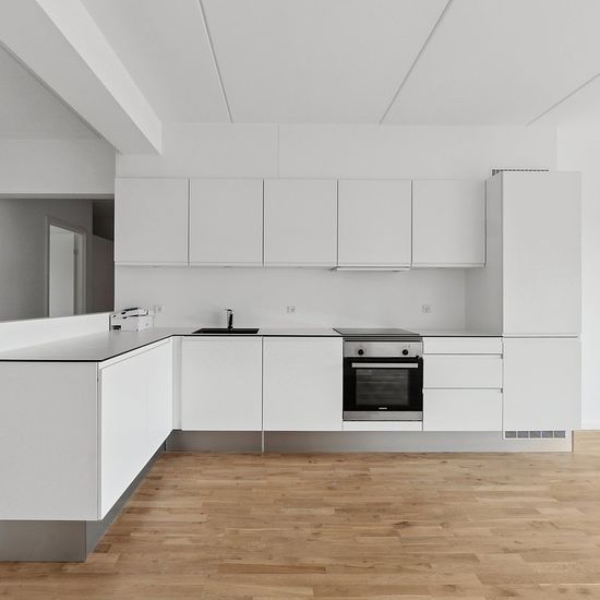 Lejligheden er en rummelig og velindrettet 4-værelses bolig med en funktionel planløsning, der udnytter pladsen optimalt. Man træder ind i en central entré, som giver adgang til boligens øvrige rum og skaber en naturlig opdeling mellem opholds- og værelsesafdeling. Boligens naturlige samlingspunkt er det store, åbne køkken-alrum, der ligger i direkte forbindelse med stuen. Køkkenet er indrettet med gode arbejdsflader og opbevaringsmuligheder samt en køkkenø, der indbyder til både madlavning og samvær. Stuen har plads til både spisebord og so...