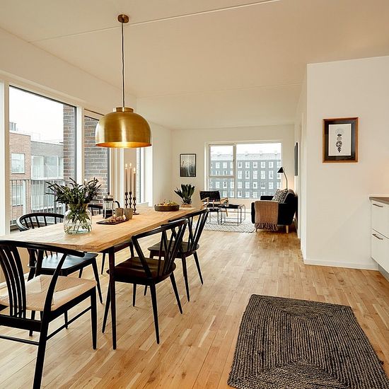 Boligen er en rummelig og velindrettet lejlighed med en gennemtænkt planløsning, der gør den velegnet til både familier og dem, der ønsker ekstra plads. Man træder ind i boligen via en entré, som giver adgang til de fleste af lejlighedens rum. I entréen er der gode opbevaringsmuligheder, hvilket skaber en praktisk og funktionel velkomst til boligen. Lejlighedens naturlige samlingspunkt er det store, åbne køkken-alrum og stue. Køkkenet er placeret langs væggen og har god bord- og opbevaringsplads. I forlængelse af køkkenet er der plads til et...