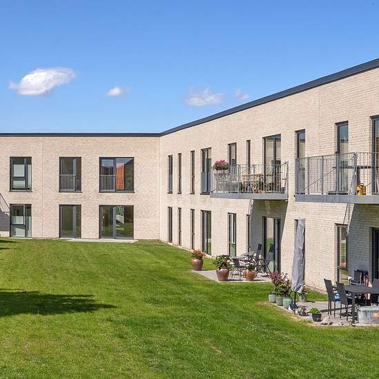 Størrelserne på boligerne er fra 56-136 m2, og selve indretningen gør dem velegnede til både singler, seniorer og små og store familier. Alle lejlighederne er velindrettede med bl.a. flot hvidt køkken i åben forbindelse med stuen, lækkert badeværelse med vaskesøjle. Der er masser af lysindfald i lejlighederne, og alle har adgang til egen lille Materialevalget understøtter bebyggelsens generelle moderne nordiske stil. Opholdsrummene har rustikke asketrægulve, som er både smukke og praktiske. Køkkenelementer er i minimalistisk design fra Invit...