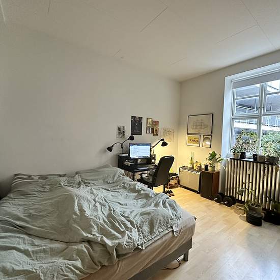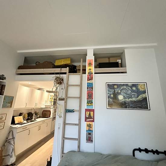 Welcome to this apartment where light meets character. A move-in ready home with a pleasant atmosphere. This nice one-room apartment is centrally located in Aalborg and offers a bright, open layout. The light living room is open to a functional kitchen equipped with good cupboard space, two hotplates and a combi oven. A small mezzanine provides the option for extra storage or a cozy sleeping area. The overall atmosphere is inviting and homely. The property The apartment has access to a lovely communal roof terrace where you can enjoy the s...