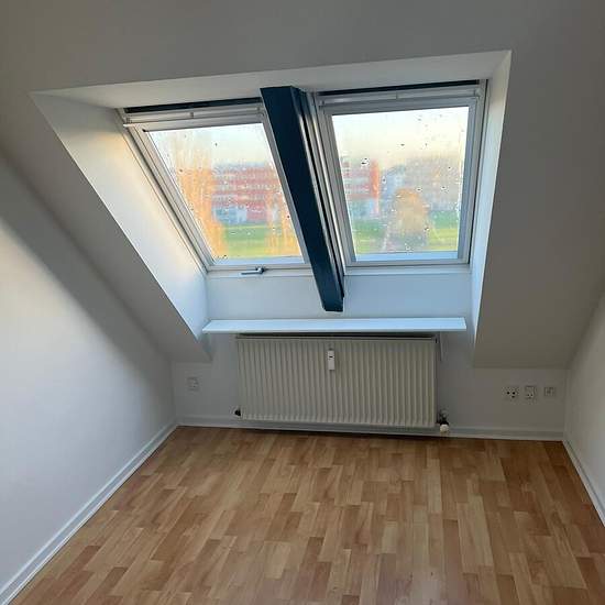 Charming room on Marselis Blvd. Charming and bright room with exposed beams. The room has a built-in wardrobe and a loft with plenty of space. There is a separate kitchen with dishwasher, stove and fridge-freezer which is shared with the 4 other tenants. There is a large communal dining room suitable for shared meals as well as 2 bathrooms to share. In the basement there is a communal laundry room and space for bicycles, and a cozy courtyard area for communal use. The apartment is located in the lovely Frederiksbjerg area, where charming s...