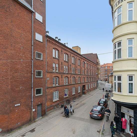 At Vesterport 7 in Aarhus city center we rent 1- to 3-room apartments perfect for students and suitable as shared housing. Some apartments have a mezzanine, and all units include an associated storage room. Appliances The apartments have a refrigerator, freezer and dishwasher. A washing machine and tumble dryer are located in the building's basement. Pets Tenants may apply for permission to keep one indoor cat. See our full pet policy here. Parking There is no parking associated with the property. There is a courtyard for bicycle parking....