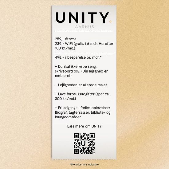 A NEW WAY OF LIVING IN THE CITY OF SMILES UNITY Aarhus is a completely new concept and living arrangement in Aarhus! WHAT IS UNITY? It is a brand new community and way of living, located at the highest point in Aarhus, making it Denmark's tallest residential building! Your new home in the 28-story building rises an impressive 170 meters above sea level, offering a stunning panoramic view over Aarhus and the bay, as well as seven municipalities. In the upcoming 1-, 2-, and 3-room FULLY FURNISHED rental apartments near Aarhus city center, ...