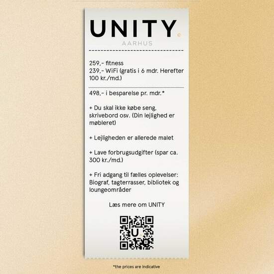 A NEW WAY TO LIVE IN THE CITY OF SMILES UNITY Aarhus is a completely new concept and living form in Aarhus! WHAT IS UNITY? It is a brand new community and way of living, located at the highest point in Aarhus and thus Denmark's tallest residential building! Your new home in the 28-story high property rises an impressive 170 meters above sea level, where you get an impressive panoramic view over Aarhus and the bay as well as to a total of 7 municipalities. In upcoming 1-, 2-, and 3-room FULLY FURNISHED rental apartments near Aarhus city c...