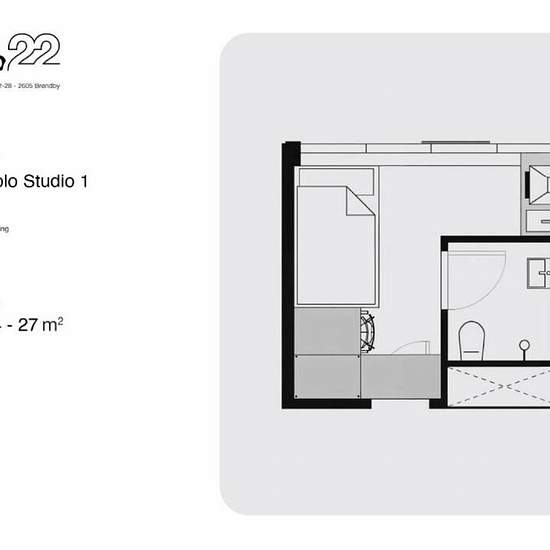About Studio 22 Studio 22 is a modern co-living community created for students and young professionals under 35 years old. Here you get both privacy and community — with dining clubs, creative workshops, study areas and cozy lounges. You can repair your bike, work on creative projects, participate in social events — or just relax in your own home. Your apartment includes - Fully furnished: desk, lamp, chair, curtains, wardrobe and storage - Private bathroom with shower, sink and toilet - Small kitchenette with hotplate, extractor hood, sin...