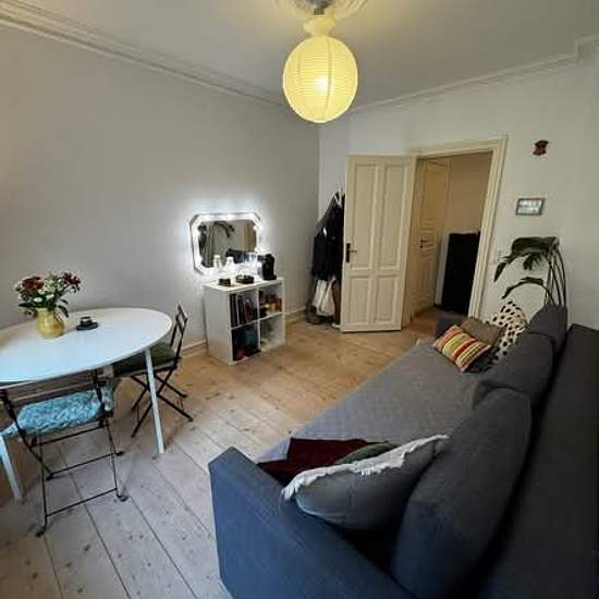 Hello We are renting out our apartment in Frederiksberg, 3 blocks from the Aksel Møllers Have Metro, 5 blocks from Fasanvej , and one block from the 2A bus. Nearby supermarkets: Netto, Føtex, and Lidl. Also close to pharmacies, Normal, Matas, and Frederiksberg Centret. It is located on the ground floor and has a small bedroom, a living/dining room, a kitchen, and a bathroom. Fully equipped! Ideal for a couple or a single person. Available for rent in January, February, and March 10,000 DKK per month 1-month deposit All utilities ...