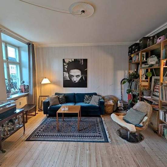 Apartment of 78 m² in the Guldbergsgade neighborhood is for rent in March for a couple or a single person. Bedroom, living room, large open-plan kitchen/dining area. Free laundry room in the basement, internet, all utilities included. No possibility of extension. Contact me for more pictures and information.
