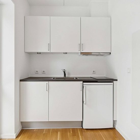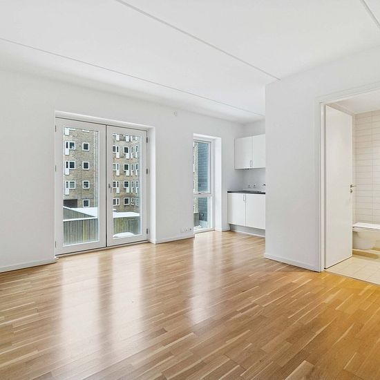On Lærkevej in Copenhagen NV, we rent out studio apartments for everyone who wants to live small but well. The homes each have their own balcony or a French balcony. All the apartments have a kitchenette and a bathroom with a private shower. Appliances You get a refrigerator and freezer in all the apartments. There are shared laundry facilities in the building's basement. Pets Keeping pets is not allowed. Parking You can rent a parking space in the building's courtyard. Common areas On each floor, there is a common room with a kitchen an...