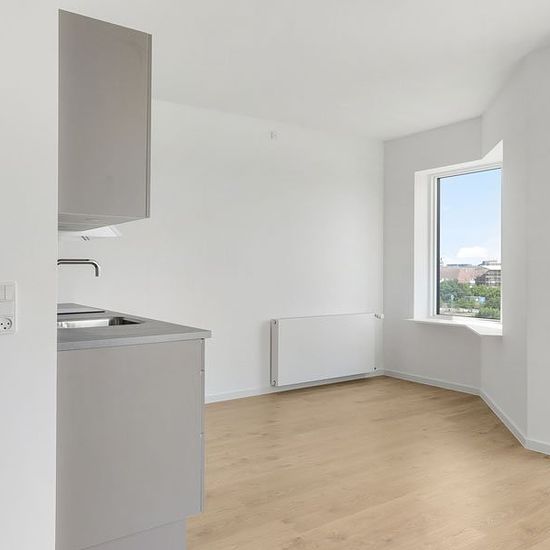 Bright, modern youth housing with balconies and views over Nordvest and Nørrebro. Lygten 37, 2400 Copenhagen NV. Now you can live incredibly well and sensibly in a small space right between the lively Nørrebro and the flourishing Nordvest. .. See more The 75 apartments, spread over the third, fourth, and fifth floors, vary in form and size from 1 to 2 room apartments – what they have in common is that they have balconies and include exactly what you need in everyday life. A small kitchen with fridge, freezer, and microwave, a large spaci...