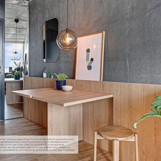 Lejlighederne er designet med fleksibilitet in mente. Møblerne er designet med flere funktioner, hvilket gør det nemt at skifte fra stue til soveværelse eller arbejdsområde til spisestue. Det er smart living, men stadig fuld af muligheder. Alle lejlighederne har et nordisk designkøkken lavet i samarbejde med det kendte, danske køkkenfirma Reform. Interiøret er specialdesignet af arkitekten, og rummer innovative løsninger, der optimerer hverdagslivet.