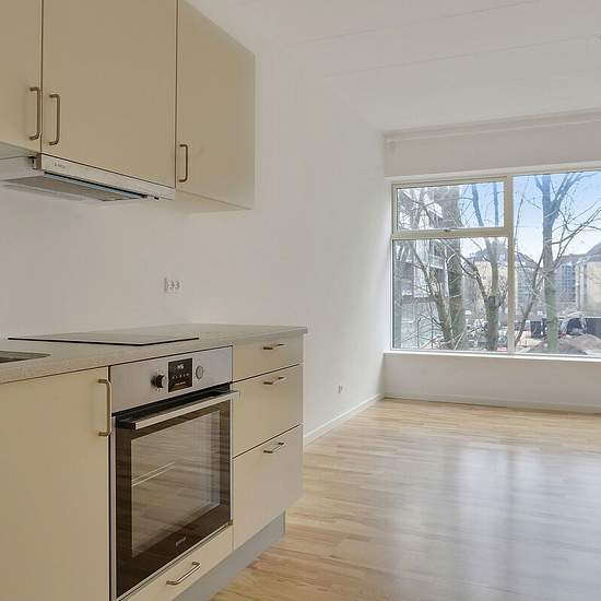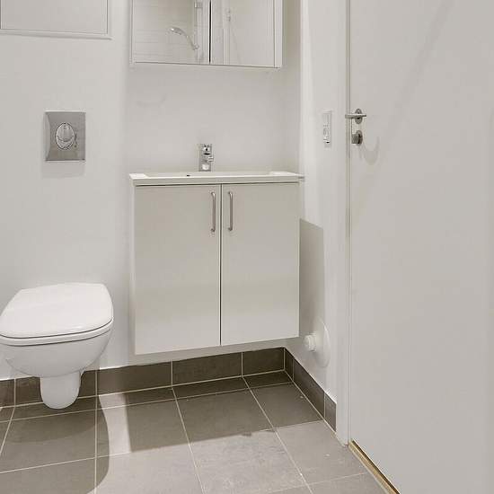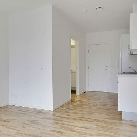 Alle lejligheder er beliggende på bygningens første sal ovenpå en stor og velassorteret Meny. Alle lejligheder er 1-værelseslejligheder med kombineret stue- og køkkenområde og eget badeværelse. Der er depotrum i bygningens kælder. Hårde hvidevarer Der er køleskab og fryser samt kogeplade i boligen. Vaskemaskine og tørretumbler findes i det fælles vaskerum. Husdyr Lejere kan ansøge om tilladelse til at holde én indekat på adressen. Udekatte og hund er ikke tilladt. Se vores samlede husdyrsregler her. Parkering Der er ikke parkering tilknyt...