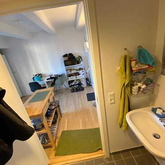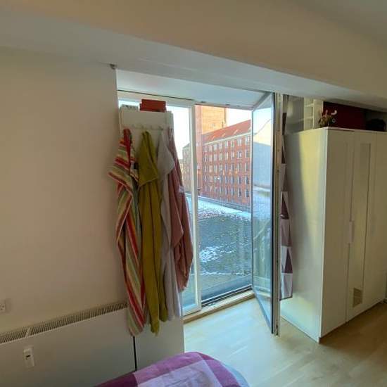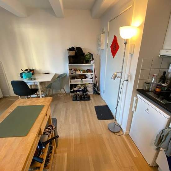 Cozy 1-room studio apartment located in the sought-after Frederiksberg C This small 1-room studio apartment is well laid out so you can fit everything. There is room in the apartment for both a bed and a sofa/dining area. The kitchen contains a refrigerator, two hotplates, a sink and a countertop oven. The apartment has its own bathroom with a shower cubicle. The apartment includes a large shared roof terrace, laundry facilities in the basement and bicycle parking. It is also possible to rent a parking space in the basement. NOTE: You must...