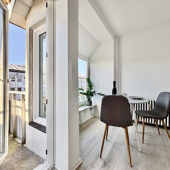 The apartment comprises an entrance hall with space for outerwear and a shoe cabinet; from here there is access to a bright bathroom. Bright kitchen with major appliances. Spacious living room with fitted carpets and access to its own balcony. The apartment has just been renovated with a new kitchen and new floors. There is a cellar storage room associated with the apartment, and there is the possibility of coin-operated laundry in the basement. Pets are unfortunately not allowed in any form. An a/c consumption charge for water and hea...