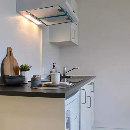 Møbleret studiebolig i hjertet af Horsens C De 44 lyse 1-værelseslejligheder indeholder alle eget køkken, bad og toilet samt større entré og garderobeplads. Hver lejlighed har desuden: • Gratis internet. • Gratis strøm. • Seng og lænestol. • Flere af lejlighederne har også skrivebord, bordlampe, garderobespejl, sengelampe og sengebord. • Eget depotrum. • Køkkenet har induktionskogeplader, køleskab med frostboks og emhætte. Fællesfaciliteterne i kollegiet er blandt andet: • Betalingsvaskeri med moderne vaskemaskiner og tørretumblere. • S...